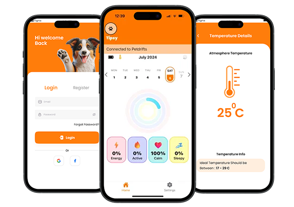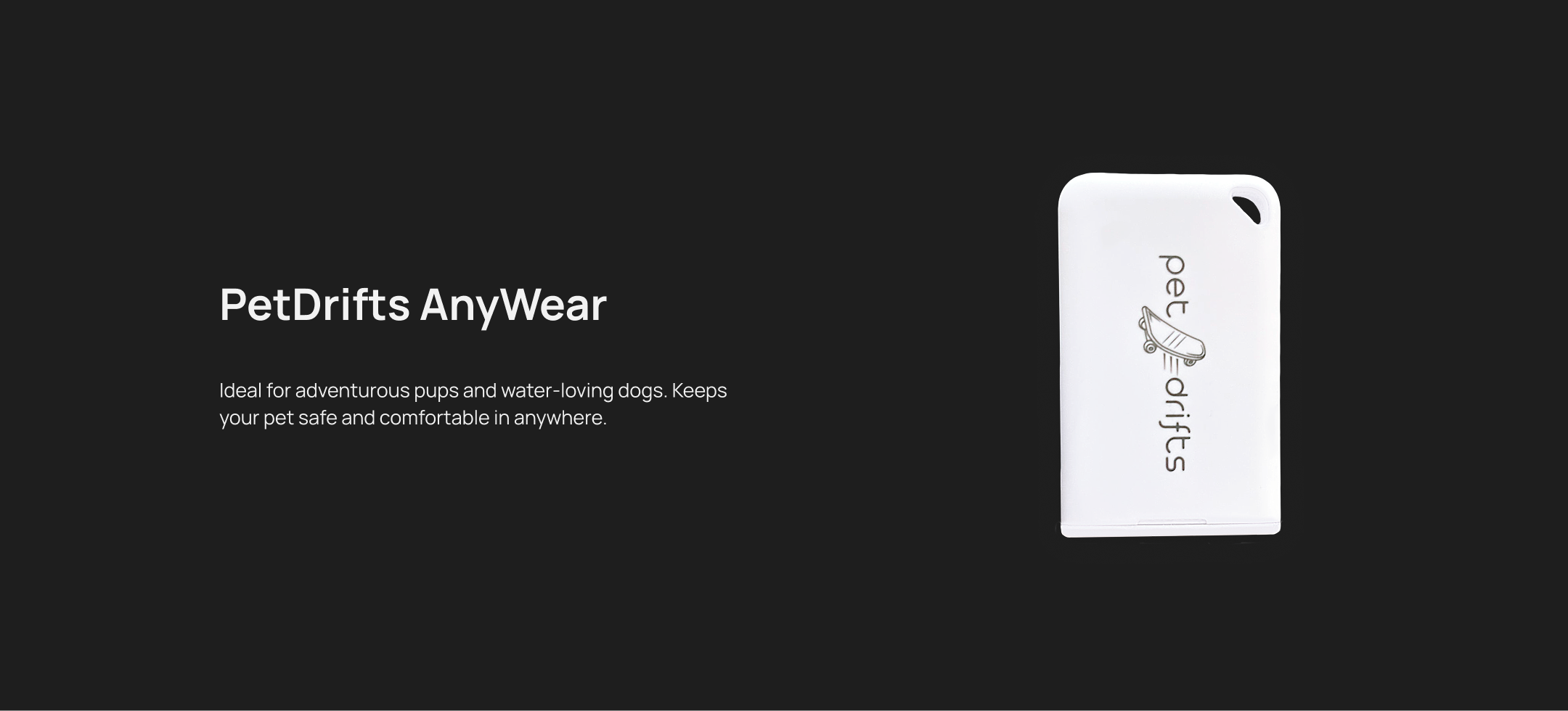 Dogs don't live a one-size-fits-all life. From bounding through a park, splashing in a creek, or snoozing on their favourite blanket, the Anywear Technology in PetDrifts Trackers keep checking your dog wellness seemlessly.