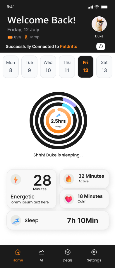 Monitor your dog's activity, sleep patterns, and temperature for improved well-being. Stay informed on your pet's health with this innovative collar.